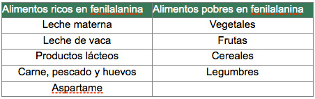 Se prohíbe estrictamente tomar bebidas o alimentos que están endulzados con Aspartame. El médico te recomendará leer SIEMPRE, cuidadosamente, la etiqueta de los productos alimenticios que le vayas a dar a tu bebé.