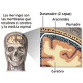 Todo ello, a su vez, queda cubierto por un conjunto de tres membranas, denominadas meninges, que también tiene función protectora. La más externa se llama duramadre, la intermedia es la aracnoides, y la interna es la piamadre.
