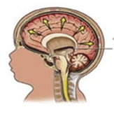 - Cefaleas, vómitos, irritabilidad, somnolencia, rechazo de la alimentación, alteraciones en la marcha, déficits visuales, hinchazón de la papila óptica (está situada en el fondo del ojo y es el lugar por el cual el nervio óptico abandona el globo ocular e inicia su camino hasta el cerebro) debida generalmente a un aumento de la presión intracraneal, déficits de la coordinación motora y convulsiones, apareciendo esto en la hidrocefalia y en las lesiones ocupantes de espacio.