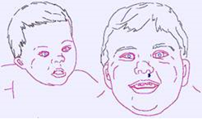 - Rostro de facciones aplanadas.