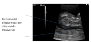 - Medición de la translucencia nucal del feto mediante ecografía y los estudios en sangre de marcadores bioquímicos: